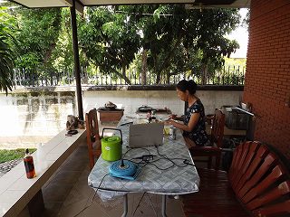 11時には、パソコンをベランダへ持ち込み、BBQの準備を始める。