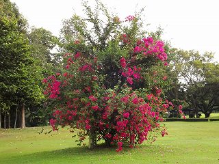 17時前庭へ パッションフルーツ 花が5個咲いている。