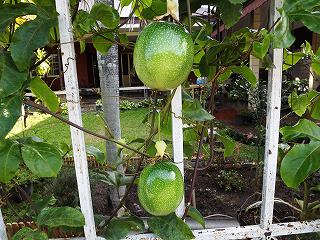 | 2つ上下に実っているパッションフルーツ |