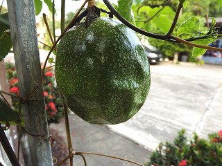 そしてパッションフルーツを見に行くと、一昨日不完全な花が咲いて、反対側にもう一つ咲き、