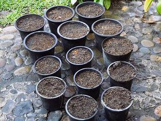 早速頂いた鉢に、小石をひいて 土をかぶせ、水掛け