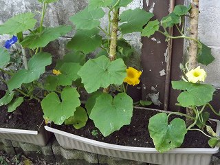 沖縄かぼちゃ 花の色が・・・ 左 朝顔 |