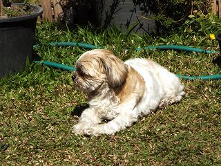 作業中は側に来て、{何で片付けんのか}言いたげなルンだが、青空の下太陽を浴びながら