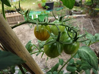 そして庭でのチェックすると、オクラ・トマトと良い感じだ!!! 水撒きして17時。