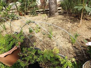 昨日買った太い針金での庭の柵作り、これも良いのではと自己満足して11時、青空も見えて