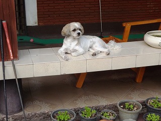 そして塀の外の雑草を取っていると、朝電話の通りO橋夫妻が先日チェンマイ入りして10時に