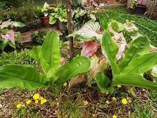 * 線香花火 1個だけ咲いた(中央手前) 芽は10個以上あったり、左のは3個葉っぱだけ!