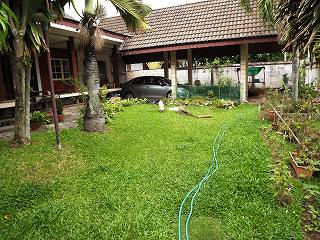 曇空の中、電動芝刈り機での一時間作業!