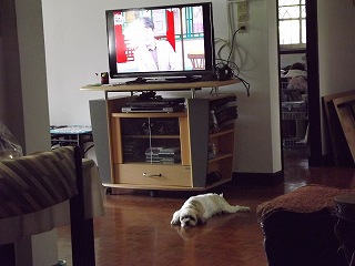 テレビを見ながら、ルン・われらの夕食(久しぶりに手巻き寿司)