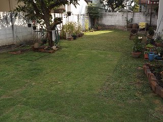 14時には庭に出て、今日も丹念に水撒き 湿度も45%と少なくぎらぎらの太陽で暑い!!