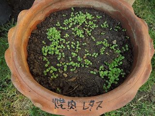 7時半庭に出ると先日蒔いた種が芽を出してきている!!
