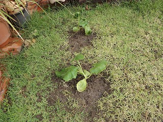 2株だけ芝のところを穴を掘ってそこに植え替えして見る、育ってくれー・・・