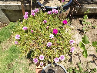 庭の観察でもしようかと見渡せば、今盛りと咲いている{松葉牡丹}に集中 庭にいたる所に咲かせ