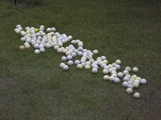 雨に濡れているゴルフボール |