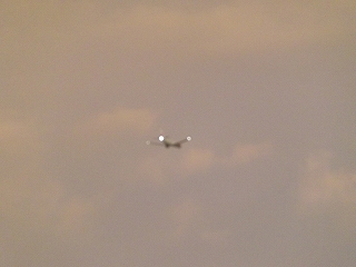 その中を飛行機がまぶしい・・・ |