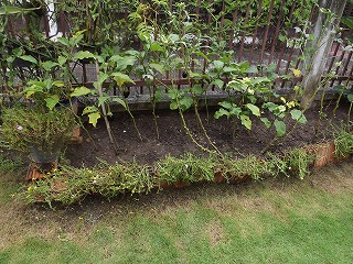 一時間もしないうちにまたもや小雨が降ってきて、塀沿いの半分は明日以降にお預けに・・・