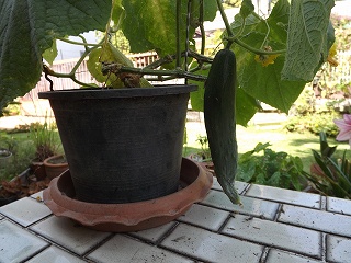 左のキュウリ 病気かなー? |