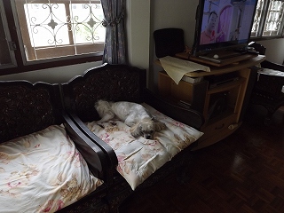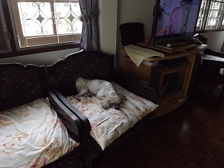 途中連れてきても今度は居間のソファー・・・ 明日になれば元気になるように!