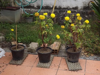 飾りが取り外されていた、我が家のマリーゴールドの花の鉢は野菜の種蒔きに使えそうだ。