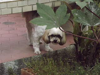 一時間半ほど雑草取りと砂一袋撒くけれど、ルンはソファーの上で寝ている。