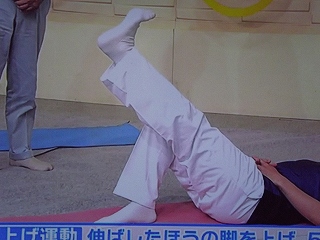 NHK教育での{膝関節症}に関する放送で、運動・ストレッチの仕方を録画放送で見て