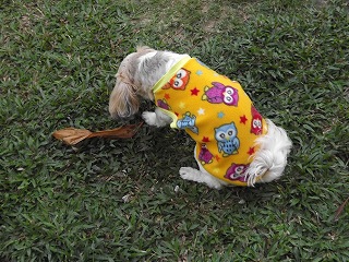 パソコン業務をしてから、ルンの身だしなみを整え再度服を着せ、自分も{セーター}に着替えて
