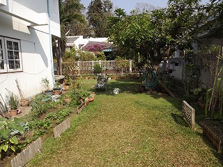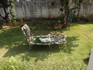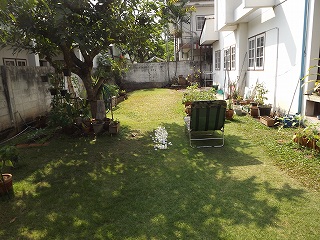 庭に出て9番アイアンでのゴルフ練習後、門の近くの雑草取りをしてから、肥料を蒔いてから、