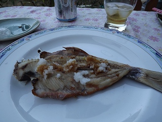 お昼休みをしてから、先ほどのCさんが、取ってきた魚を開き{日干し}2匹持って来てくれる。