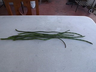 遊びに来てくれたCさんに{三尺ささげ}半分差し上げる、散歩へ出かけるのを見送りNHKの