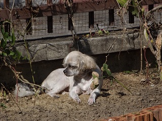 散歩に来た夫妻に吠えてこんな格好・・・ |