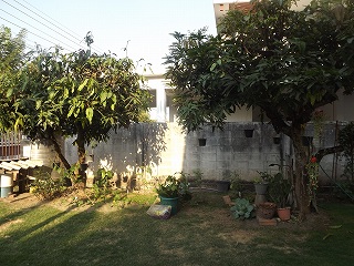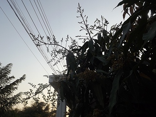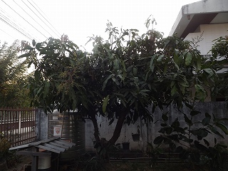 サッカー・卓球を見てから17時 2本あるマンゴーの木の間が設置するのに良かろうと、木の伐採
