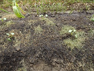 13時過ぎ、朝の大根の植え替え 12本ほど植え替えするがまだ鉢には残っている。