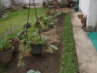 右側の畑の周りの雑草取りしてから、オクラと白菜と大根の植え替え。