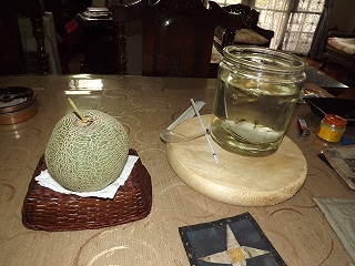 5時半過ぎ朝食 桜餅とマンゴー ルン 自ら来てちゃんと食べた!