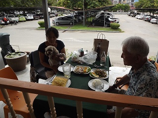 | 外側で3人で、ルンも入り昼食 |