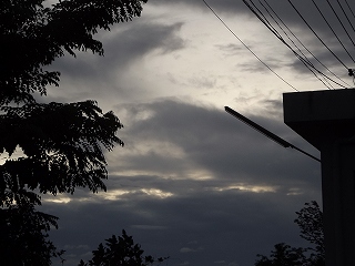 5時40分起床 ベランダから外を見れば雲が多くて、黒い雲も少し・・・