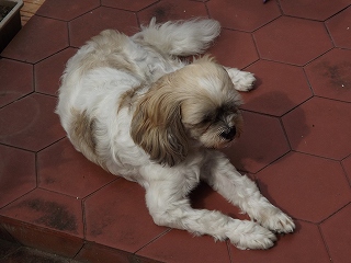 ルン 15分ほどすると戻って来て、トイレのタイルにべったりしている、暑いのに・・・