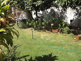 お昼休みをしてから、15時スプリンクラーでの水撒き 自力ではとてもかなわない!