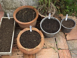 しょうがないかなーと空いている鉢に、残っている種蒔き。
