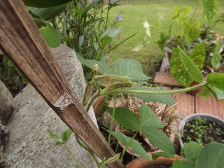 | オクラ 朝4本収穫 |