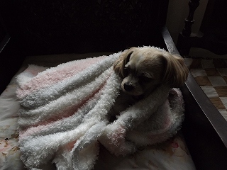 寒そうにしてるので中に入れてやる |