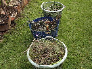 お昼休みしてから、少しサンドウエッジでゴルフ練習後、日本芝を張った周りの雑草取り。