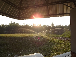| 5番ロングを終えてスプリンクラーと太陽 |