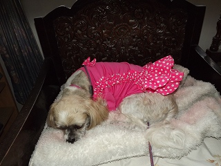 6時出かける前にルンの身だしなみ 暗い中ランナーへ行くのは嫌なんだが・・・