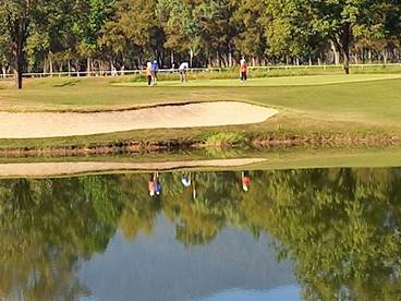 7番ショートでトップ気味の低いボールで池の土手直撃 うち直してダブルパー