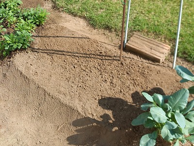 春菊の畑 集中させて次に植える(トウモロコシ)ように耕してから水撒き・・・10時半
