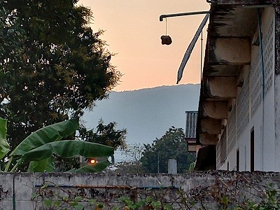 7時過ぎに朝日が見える 7番のブーゲンビリア 枯れているところあり