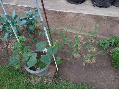 ブロッコリー まだかなー・・ キューリとトウモロコシ