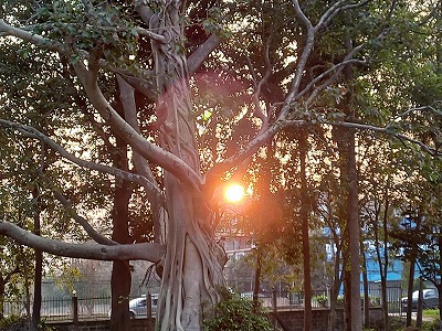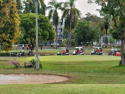 2番ティー右 太陽が昇る 3番ロング 山はすっきりとは言えない眺め