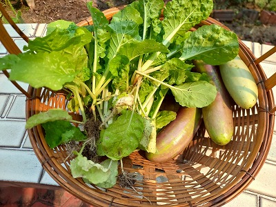 結球しない白菜とナス3個 収穫 次へのためにも洗って乾かす